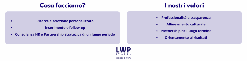 Accompagniamo le organizzazioni nella selezione, nello sviluppo e nella valorizzazione delle risorse che generano impatto. Un approccio integrato tra ricerca specialistica e consulenza HR per risultati concreti.